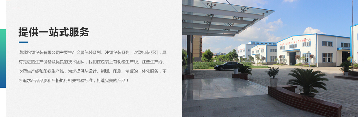 湖北銘塑包裝有限公司一家集研發(fā)、生產(chǎn)、銷售于一體的較優(yōu)秀民營企業(yè),技術(shù)力量雄厚,產(chǎn)品質(zhì)量可靠。位于交通暢順,百業(yè)興旺、經(jīng)濟(jì)富裕、政策開放的孝感開發(fā)區(qū)域。我們企業(yè)的營銷戰(zhàn)略是以建筑為土壤,以產(chǎn)品為種子,以質(zhì)量為肥料,讓綠色鋪滿全球。憑借多年來的行業(yè)經(jīng)驗(yàn),公司不斷進(jìn)行創(chuàng)新和研發(fā),為市場提供更廣泛的產(chǎn)品應(yīng)用領(lǐng)域和更好環(huán)保節(jié)能產(chǎn)品,為國家能源環(huán)保戰(zhàn)略和可持續(xù)發(fā)展戰(zhàn)略作出應(yīng)有的貢獻(xiàn)。 湖北銘塑包裝有限公司主要生產(chǎn)金屬包裝系列、注塑包裝系列、吹塑包裝系列,具有先進(jìn)的生產(chǎn)設(shè)備及優(yōu)良的技術(shù)團(tuán)隊(duì),我們在包裝上有制罐生產(chǎn)線、注塑生產(chǎn)線、吹塑生產(chǎn)線和印鐵生產(chǎn)線,為您提供從設(shè)計(jì)、制版、印刷、制罐的一體化服務(wù),不斷追求產(chǎn)品品質(zhì)和嚴(yán)格執(zhí)行相關(guān)檢驗(yàn)標(biāo)準(zhǔn),打造更好的產(chǎn)品!